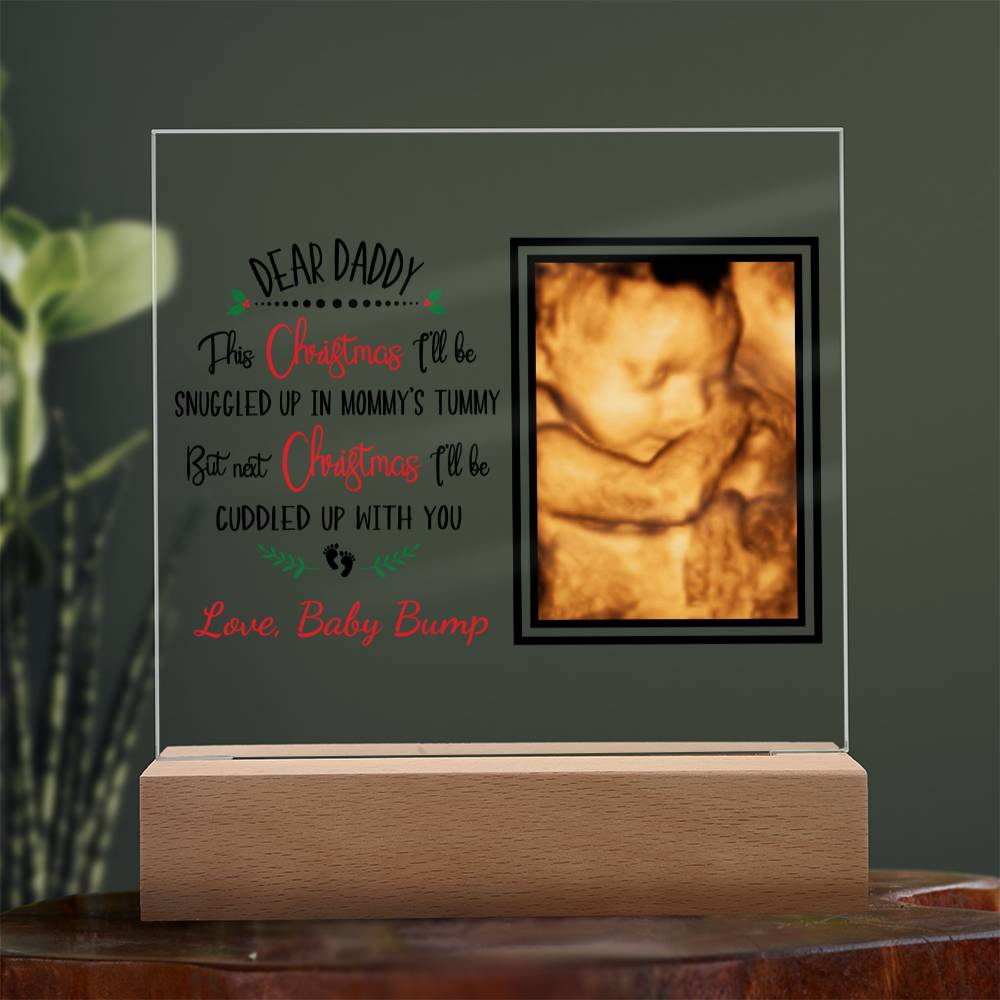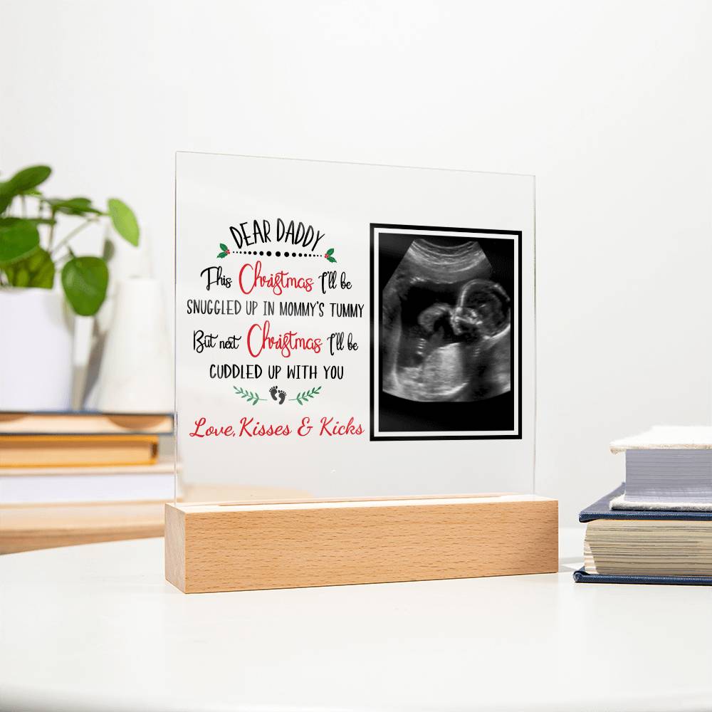 Celebrate the upcoming arrival of your baby with this unique and special keepsake! This acrylic plaque features your ultrasound, sending a special message of love from your little one to daddy – a perfect Christmas gift! Show dad just how much you care with this truly special gift.