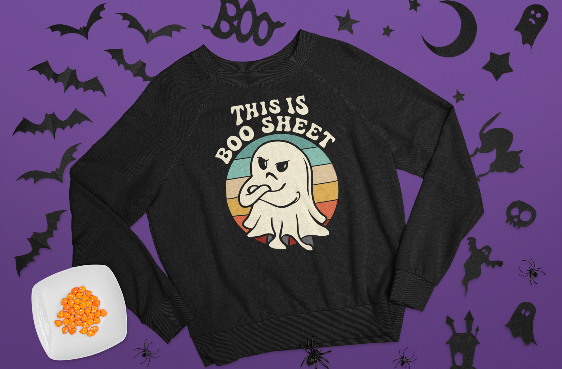 Our "boo sheet" sweatshirt is not your average apparel – it's a bewitchingly hilarious fashion statement that embraces the Halloween spirit year-round. Whether you're a trick-or-treat enthusiast or just love to keep things boo-tifully cozy, this sweatshirt is the perfect companion for your spooky shenanigans. And remember, if anyone asks why you're wearing a sweatshirt that says "boo sheet," just tell 'em you're all about that Halloween hustle – and the punny cozy life! 👻🧡🕸️