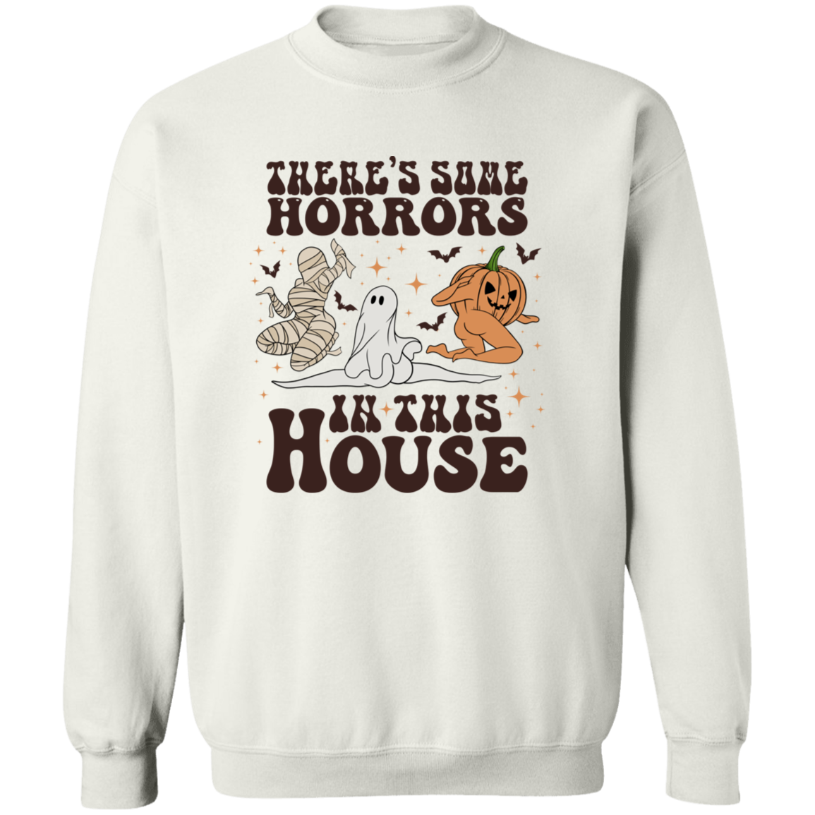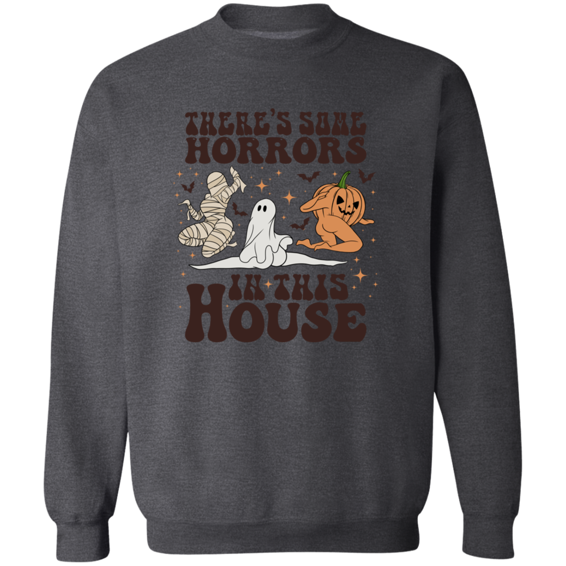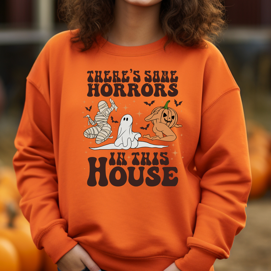 This Halloween, make a statement with our Horrors In This House Sweatshirt! It's the perfect spooky-chic outfit for your festive holiday plans. Show your friends and family that you ain't scared of no ghost (or zombie, or mummy). Whether you're trick-or-treating or attending an epic Halloween party, you're guaranteed to look wicked awesome in this ghoulish garment!