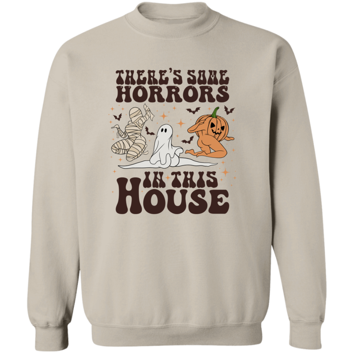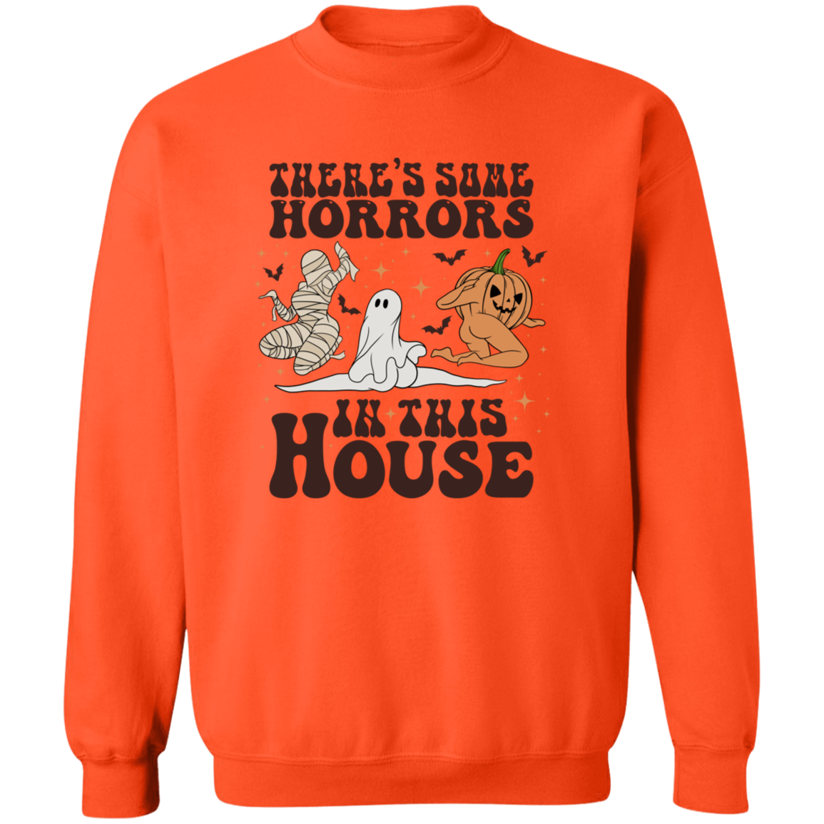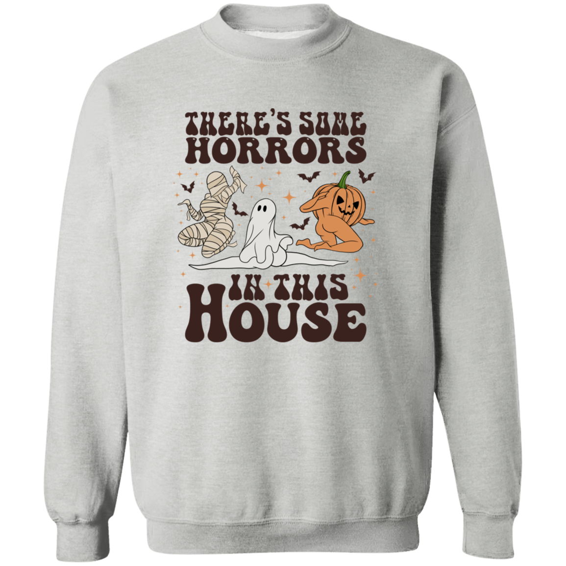 This Halloween, make a statement with our Horrors In This House Sweatshirt! It's the perfect spooky-chic outfit for your festive holiday plans. Show your friends and family that you ain't scared of no ghost (or zombie, or mummy). Whether you're trick-or-treating or attending an epic Halloween party, you're guaranteed to look wicked awesome in this ghoulish garment!