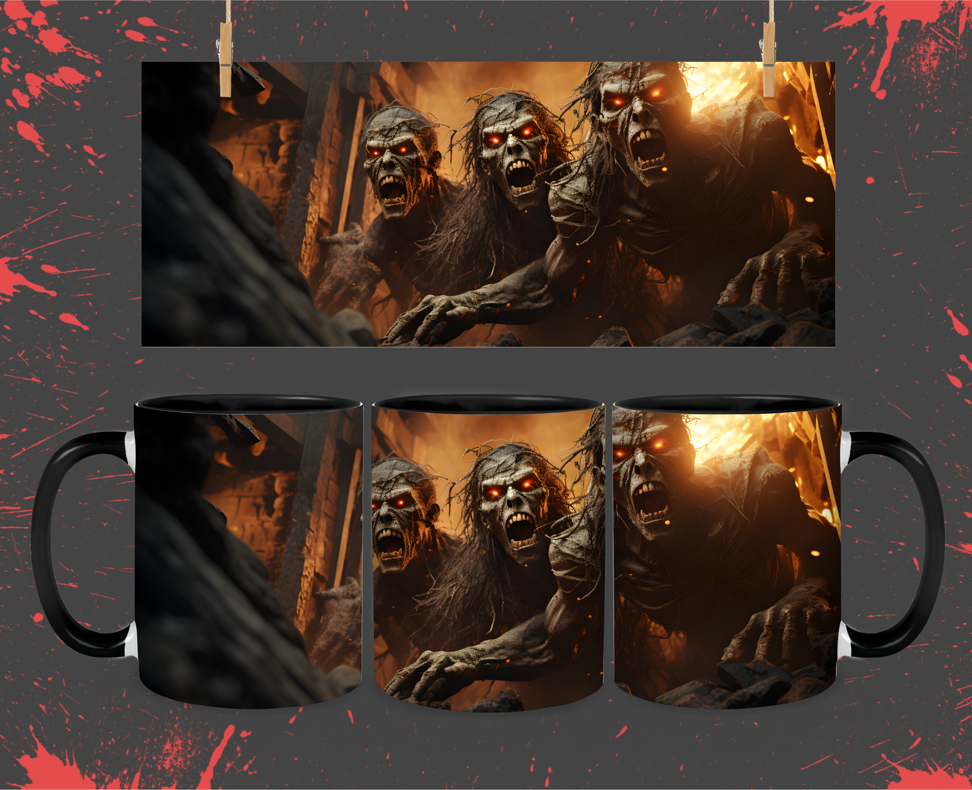 Be prepared to be amazed! Our 15 oz. color changing mug morphs before your eyes when filled with a hot beverage, revealing a horde of terrifying zombies. Get ready to be spooked and marvel at the transformation!